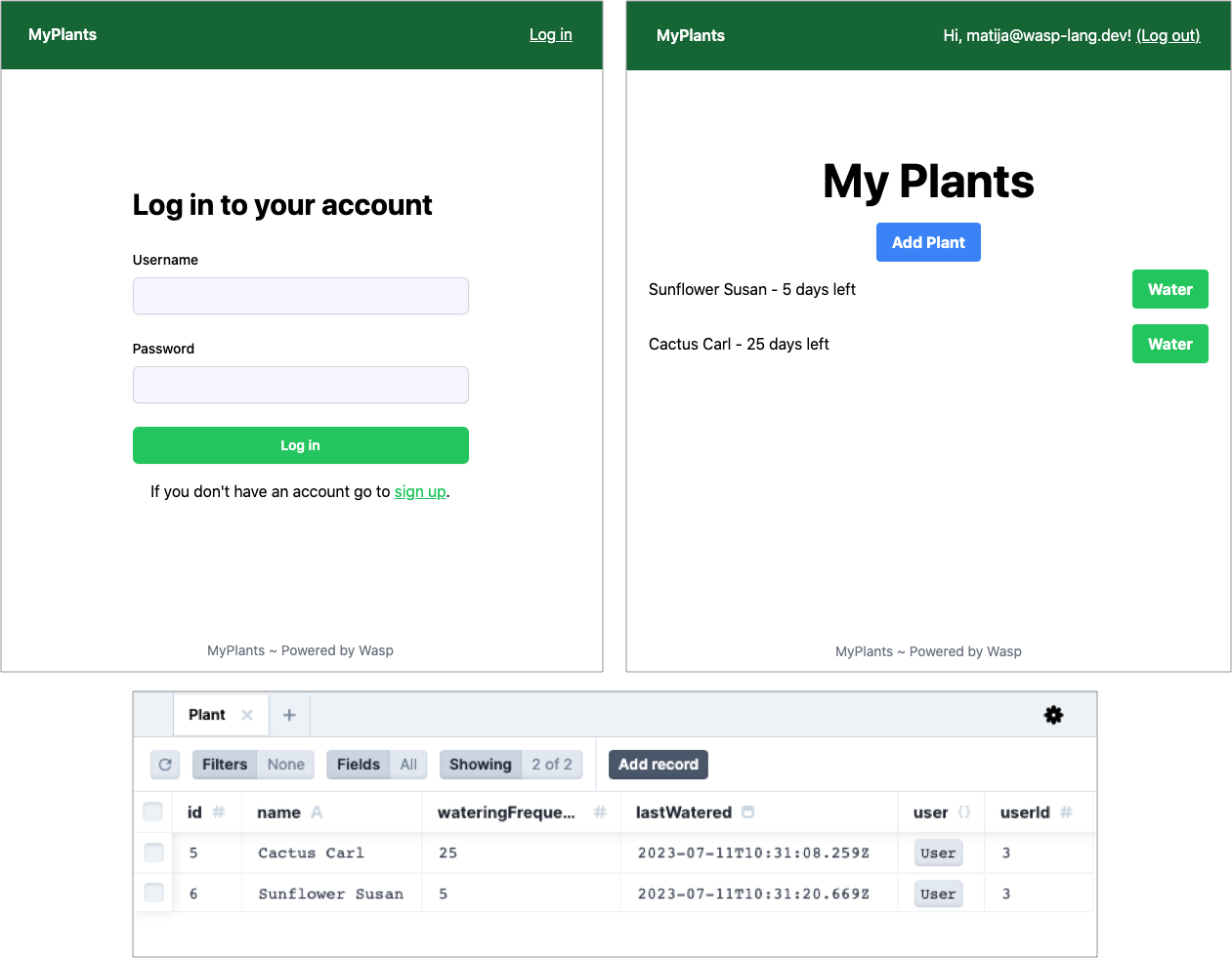 The next step would be to add more advanced features, such as email reminders (via Wasp email sending support) when it is time to water your plant.